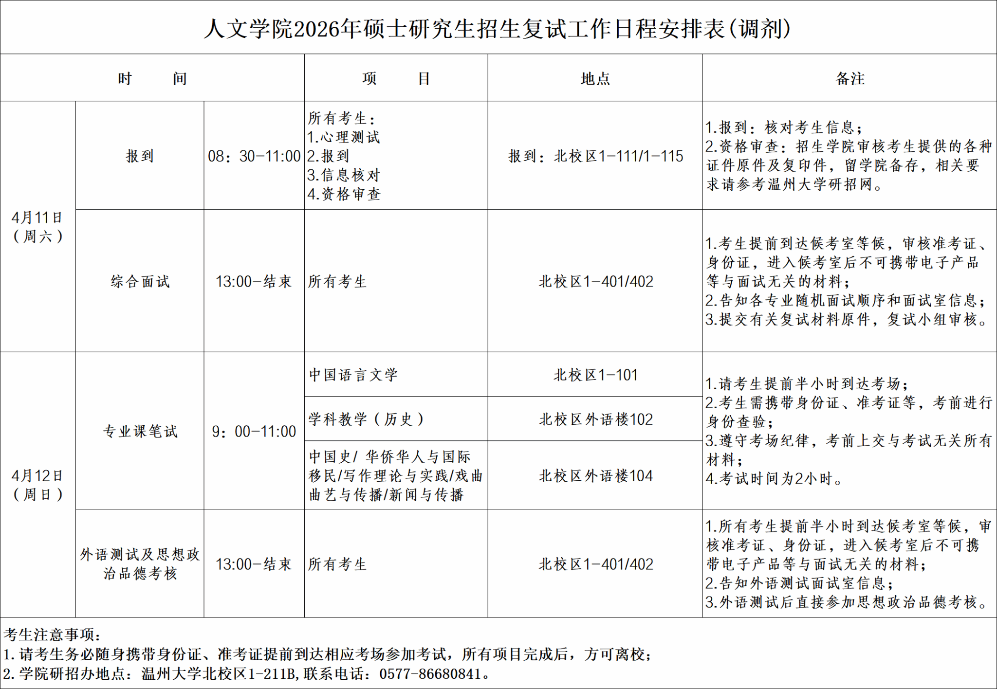 人文学院2026年硕士研究生招生复试工作日程安排表(调剂)