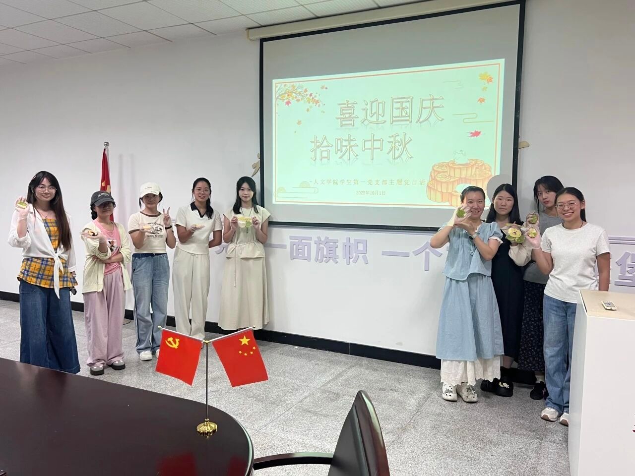 活动落幕,活动室渐归安静,空气中萦绕的淡淡月饼香与满室温情却久久不散。这个假期,温州大学人文学院学生第一党支部的同志们,有人选择留校相聚,在亲手制作的月饼里品味集体的温暖;有人暂别校园返家,在亲人的陪伴中感受传统佳节的团圆。无论身在何处,大家都以各自的方式,为国庆添上了一抹清甜的中国红,也让这个双节,既有校园的青春暖意,也有归家的温馨圆满。