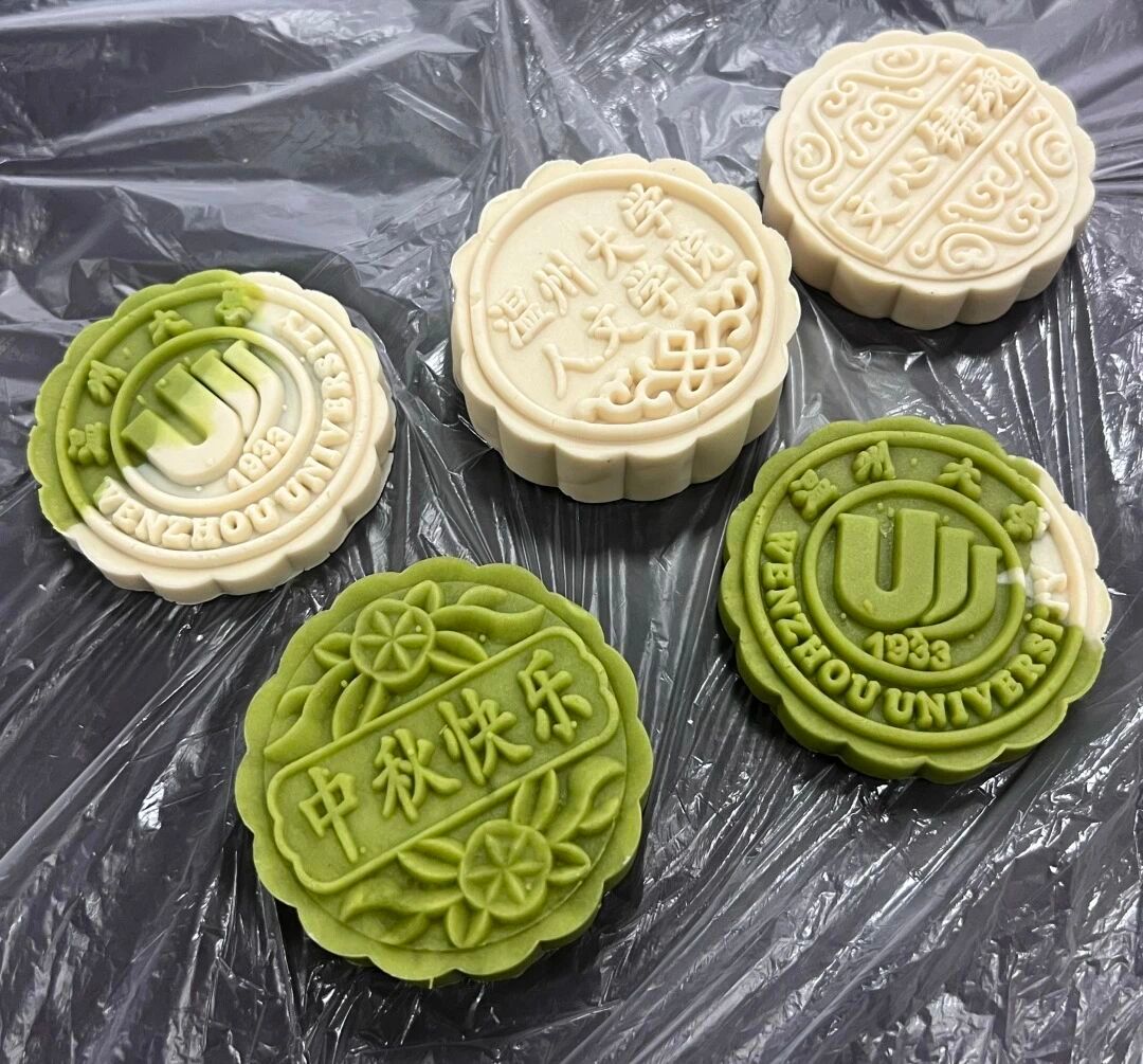 留校党员同志们在组织者的讲解下,迅速掌握了月饼的制作技巧,揉皮、包馅、压模有条不紊。大家将面皮放在掌心反复揉搓,使其更有韧性,随后按个人口味选择馅料,虎口收紧、褶口朝下、滚动几下,用刻有“中秋快乐”“温州大学人文学院”字样的模具一压,一个个月饼就完成了。“要让吃到月饼的同学一眼看到祝福,感受到节日的快乐和学校的温暖。”本次活动组织者之一张雯静同志说。活动室里,虽然大部分同志是第一次亲手做月饼,但她们每一步都做得仔细认真,希望大家能够尝到这份心意。在整理月饼的间隙,学生第一党支部书记杨凯老师带领党员们重温了中秋文化内涵,分享了革命年代的中秋故事,让大家深刻体会到“团圆”二字背后的家国情怀。