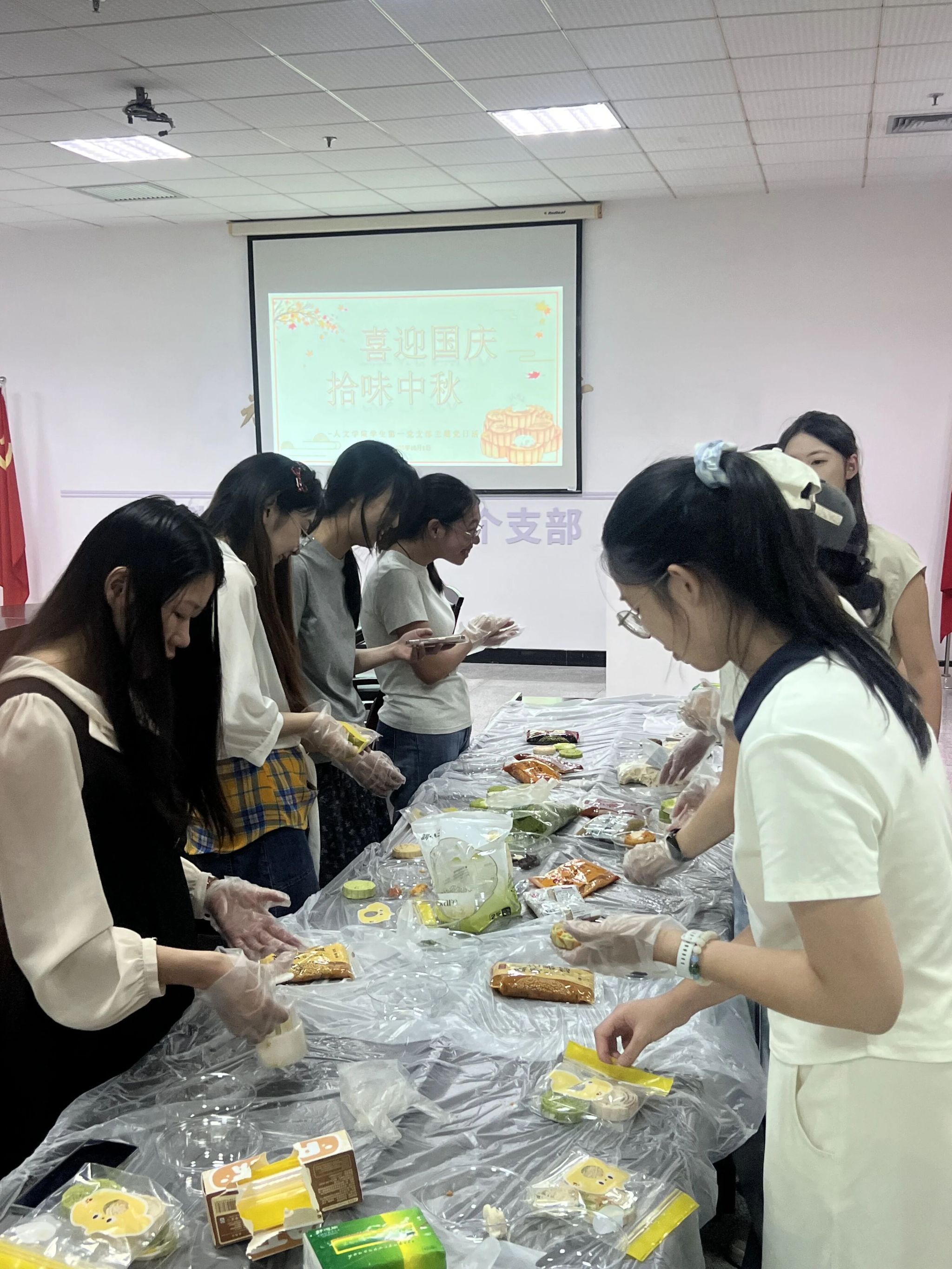 10月1日下午,大学生活动中心A座党员之家香气弥漫,温州大学人文学院学生第一党支部“喜迎国庆,拾味中秋”主题党日活动在此举行。与往年不同,今天的主角是本次国庆中秋假期10月1日当天选择留校的党员同志们。