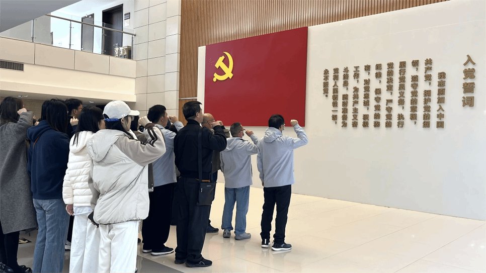 随后,全体参与人员在清廉馆前整齐列队,举行庄严的宣誓仪式。面对鲜红的党旗,大家高举右拳,字字铿锵地重温了入党誓言,誓词中饱含着“清正廉洁、严于律己”的党员担当,让在场师生的廉洁信念与育人使命感得到进一步升华。