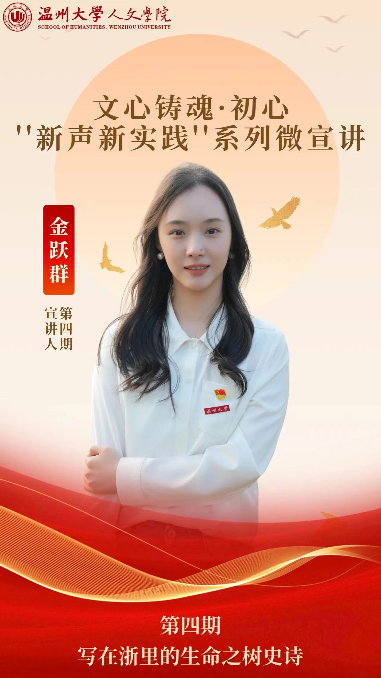 为推动党的创新理论在青年群体中走深走实、入脑入心,温州大学人文学院立足学科特色与育人使命,持续擦亮创新理论宣讲特色,推出“理论落地生根,实践开花结果”系列微宣讲活动。学院以常态化、多样化的宣讲形式,搭建起理论学习与基层实践的联结桥梁,让青年学子在鲜活案例与实地感悟中,读懂党的创新理论的时代内涵与实践力量。