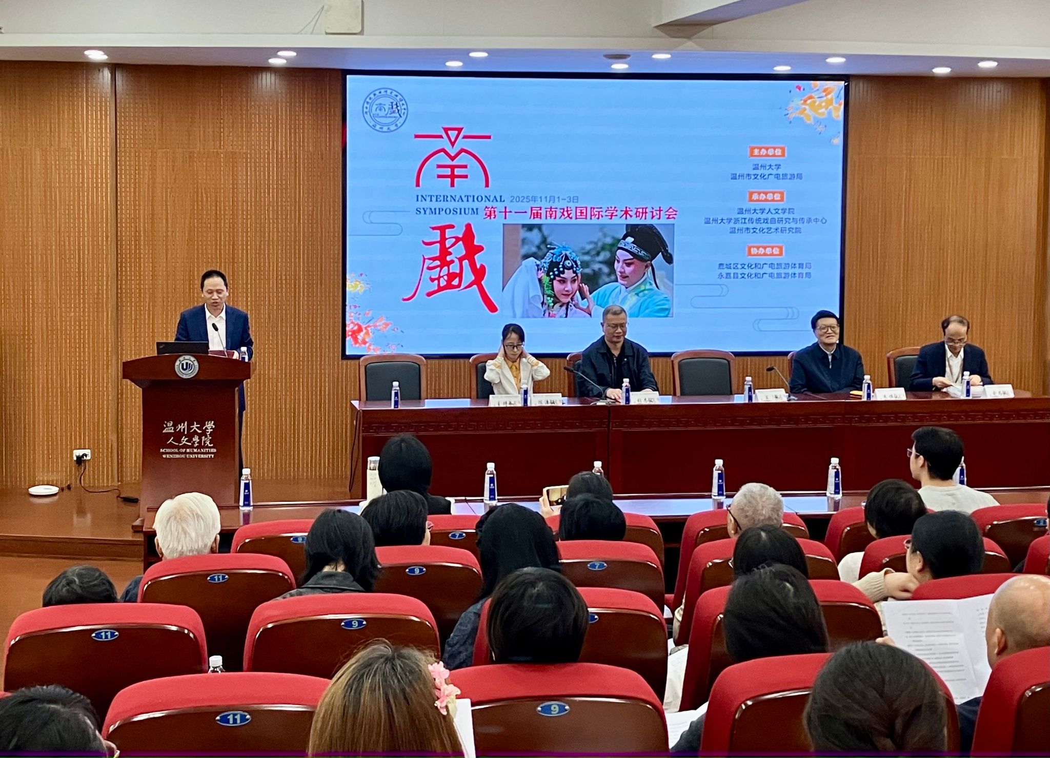 2025年11月1-2日,由温州大学、温州市文化广电旅游局联合主办,温州大学人文学院、温州大学浙江传统戏曲研究与传承中心、温州市文化艺术研究院承办,鹿城区文化和广电旅游体育局、永嘉县文化和广电旅游体育局协办的第十一届南戏国际学术研讨会在温州大学成功举办。本次会议共收到论文70余篇,研讨内容涵盖南戏研究、古代戏曲、曲体曲律、戏曲理论、昆曲传播、近代戏曲、域外戏曲、地方戏以及戏曲学术史等多个领域。来自中国国内及澳大利亚、韩国、美国等国家地区的近50所高等院校与研究机构的近百名专家共襄盛举,围绕南戏起源与流变研究、南戏作家与作品研究、《宋元南戏百一录》研究、古代戏曲相关问题研究、民营剧团生存与发展研究、戏曲创造性转化与传播研究等议题展开了深入的学术交流。