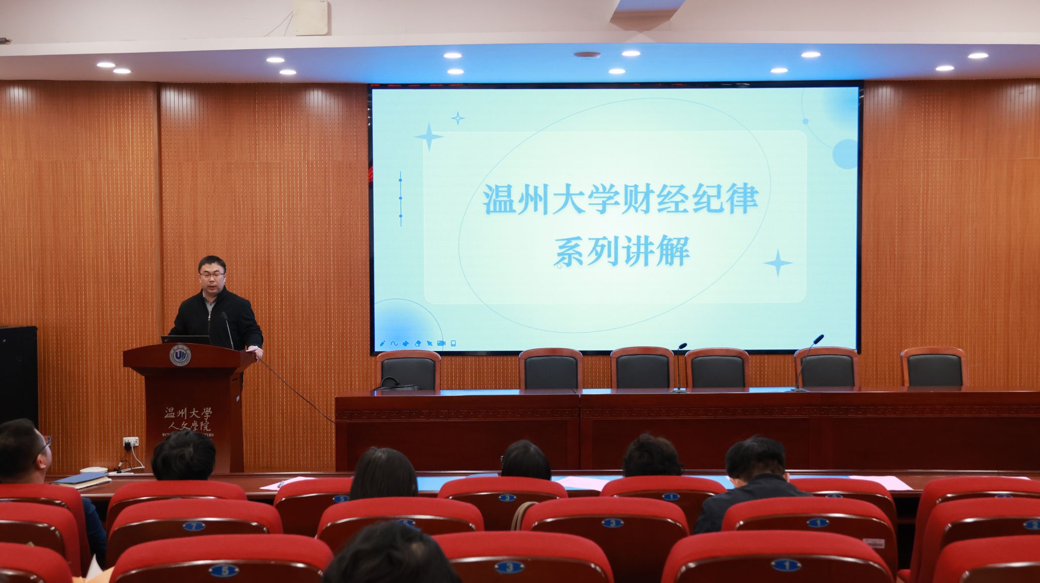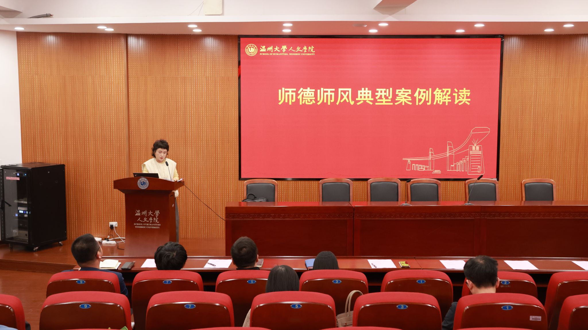 最后,会议召开师德师风建设专题学习会。张真副院长作财经纪律专题解读;黄玮副书记通报师德师风负面案例;江秀景书记分别从组织领导、机制建设、宣传教育、过程管理等10个方面,全面介绍和回顾了学院师德师风建设的相关情况,强调全体教师务必提高思想认识,做到警钟长鸣、慎独慎行,共同营造和谐稳定氛围。