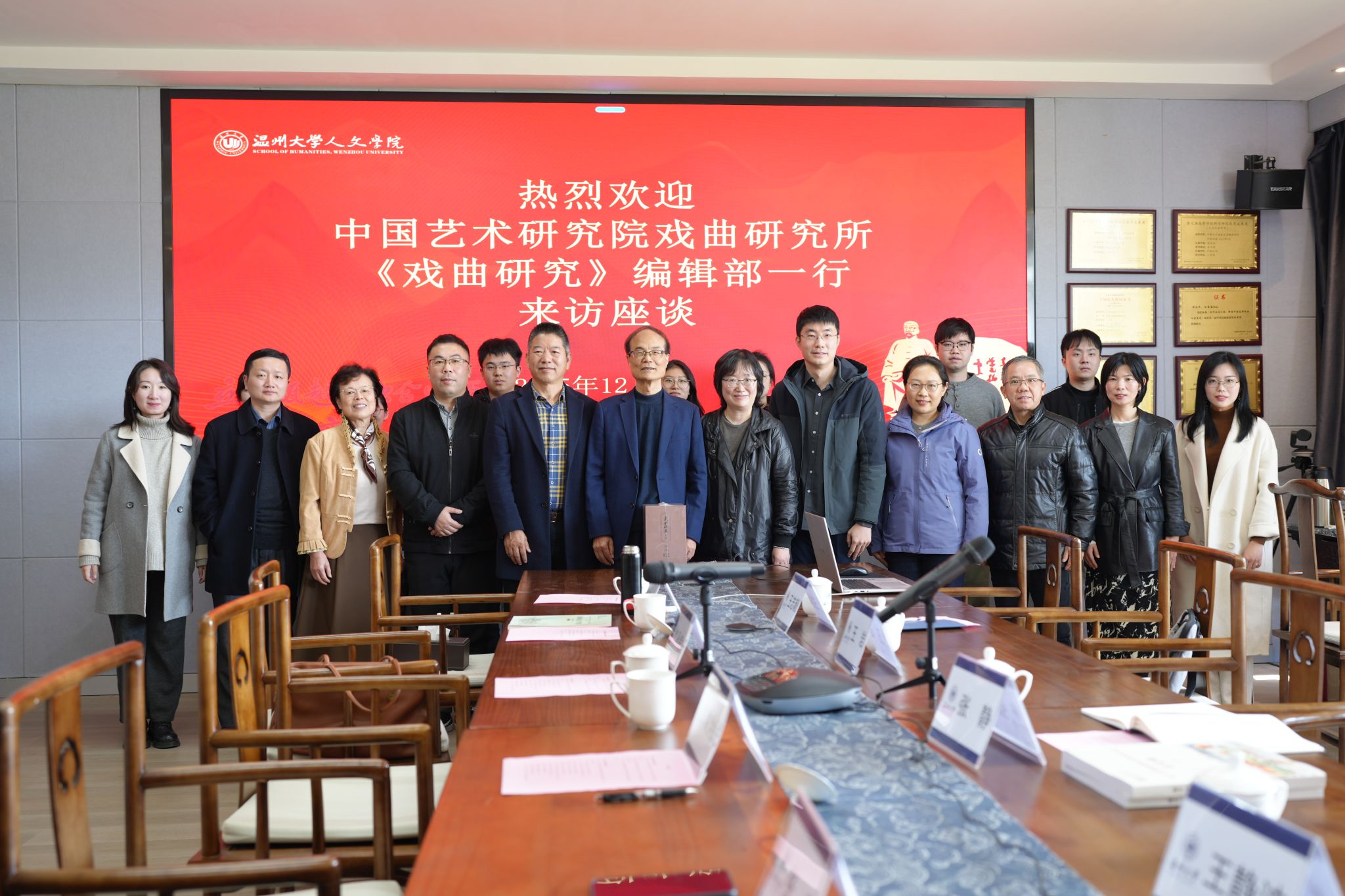 12月7日,中国艺术研究院戏曲研究所《戏曲研究》编辑部副主编张静、编辑部主任王静波、编辑王岩一行到访温州大学人文学院,与浙江传统戏曲研究与传承中心研究团队进行座谈。我院院长孙良好、副院长张真,以及王汉民、孙蓉蓉、王志毅等,与来自温州商学院、温州理工学院的青年教师和温州大学的研究生代表一同参加了交流。本次座谈会由我校文科资深教授、浙江传统戏曲研究与传承中心首席专家俞为民主持。