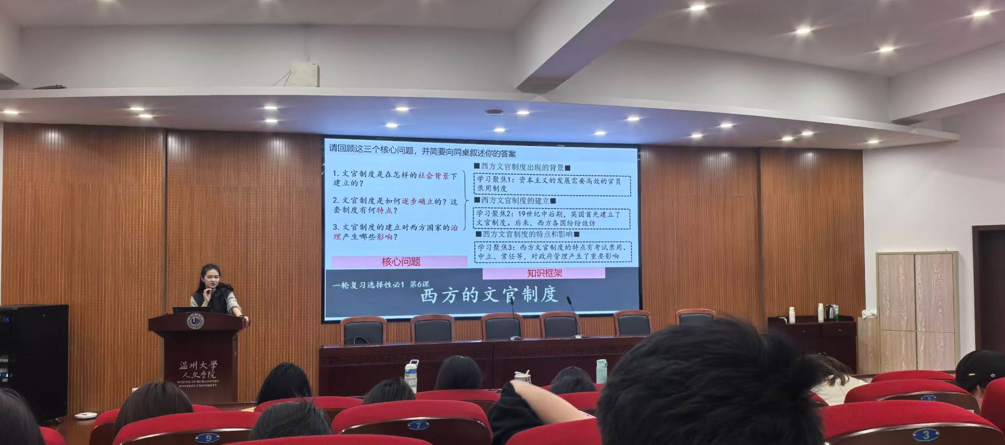 17 日下午,黄欢老师开展了题为“中学历史课堂观摩与解析”的专题讲座。她先带同学们深入解读高中历史课标,再结合自身经验详解课堂观察方法,还以省优质课“近代移民活动和人口的跨地域转移”为范例,引导同学们分析课堂优缺点,让同学们清晰认识到课堂生成的逻辑与优质教学的核心要素。黄老师紧扣课标与教材,将理论阐释与课例分析深度融合,讲解鞭辟入里,为中学历史教学提供了系统性实践建议,也为历史师范生的专业成长提供了有力指导。