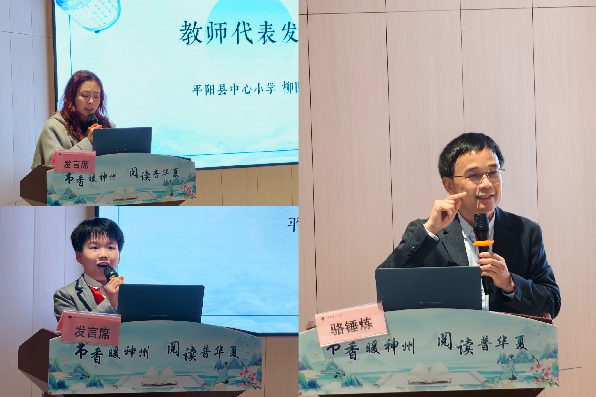 平阳县中心小学教师代表柳圆圆、学生代表郑远锐同学先后发言。国家语言文字推广基地(温州大学)副主任骆锤炼老师为同学们讲授了《汉字的形体与书写规范》精彩微课。人文学院教工第三党支部书记余琼老师深有感触,她表示,作为省级党建工作样板支部和校级“政治功能、组织功能‘双强’党支部典型案例”培育创建单位,下一步将加强与平阳县小党总支的合作,要以党建引领为核心,通过理论共学、支部联建、人才共培等形式,推动党建工作与语言文字业务深度融合。