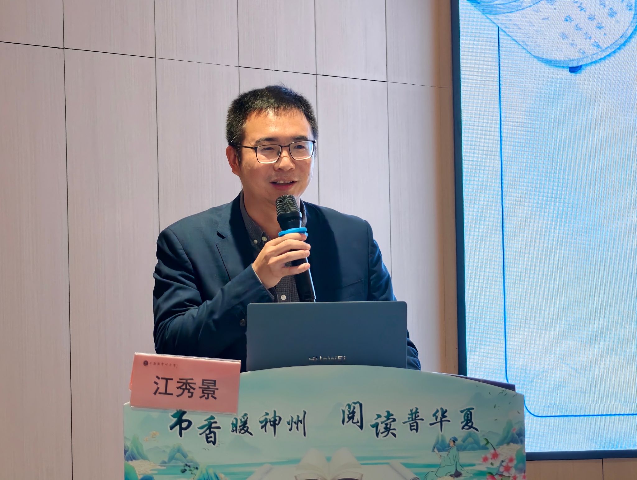 江秀景书记代表人文学院讲话。他指出,温州大学与平阳县中心小学在历史渊源、师资培育和以苏步青先生为代表的知名校友等方面有着不解之缘。近年来,温州大学及人文学院的办学实力不断增强,国推基地的建设取得了丰硕成果。此次合作是校地携手的重要探索,期望以党建为引领,将工作站打造成区域性推广普及中心、文化传承实践中心。