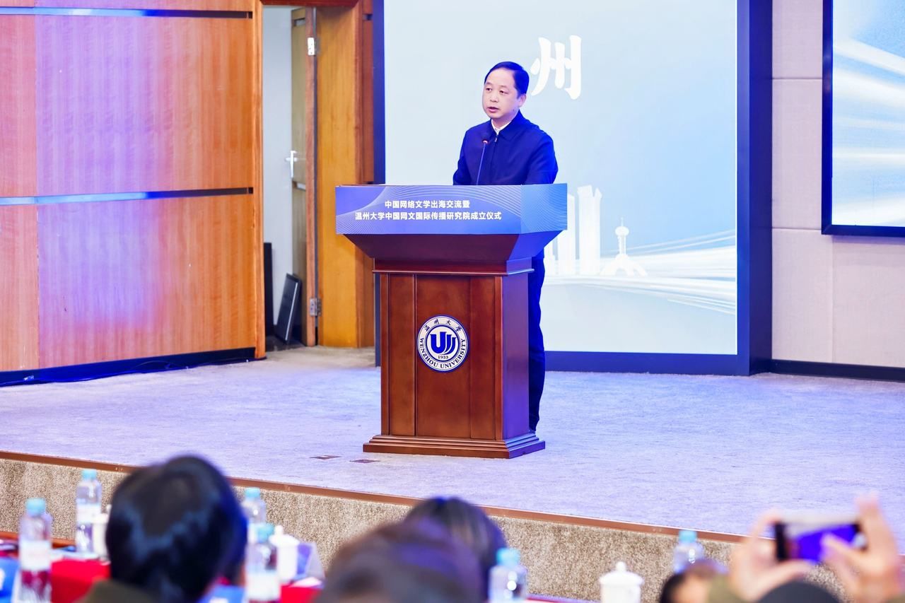 活动由中国作家协会、浙江省作家协会指导,温州市委宣传部与温州大学联合主办,旨在搭建高水平协作平台,全力推动网络文学成为讲好中国故事、传播中国声音的重要载体。活动现场,中国作协党组成员、书记处书记胡邦胜、浙江省作协党组书记叶彤、温州市委常委、宣传部部长王彩莲、温州大学党委书记钱强等领导出席活动并共同见证中国网络文学交流中心的落地与研究院的成立。作为国家文化战略的重要践行者,温州大学始终以服务国家战略和地方发展为己任。早在2019年便前瞻布局,成立网络文创研究院,聚焦网络文学创作生态、产业发展与理论研究,集聚了一批高层次人才与青年学者,逐步构建起涵盖创作引导、学术研究、人才培养的协同体系。此次中国网文国际传播研究院的成立彰显出温州大学在网络文学领域的学术实力与引领潜力。