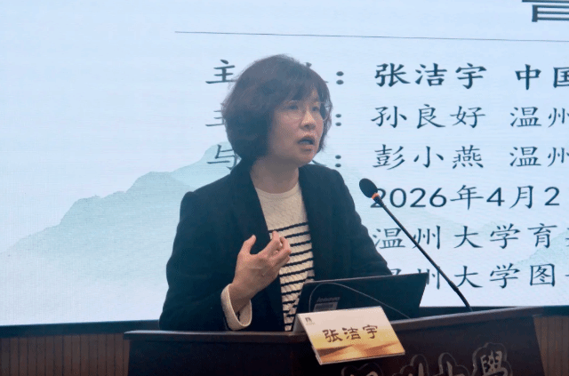 2026年4月2日晚,中国鲁迅研究会副会长、中国人民大学文学院教授张洁宇应邀在我校育英图书馆作了一场题为“血痕、拾花与南下——鲁迅的1926”专题讲座。本次讲座由温州大学人文学院院长、图书馆馆长孙良好教授主持,我院彭小燕教授参与探讨,部分教师和学生到场聆听。