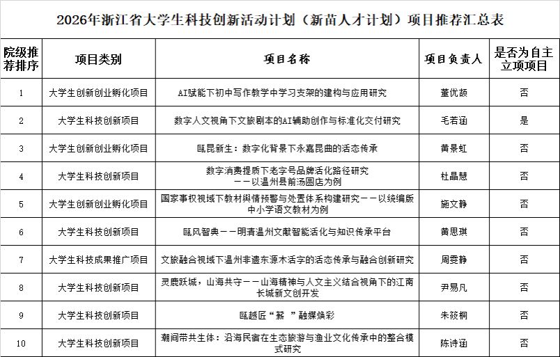 经自主报名、院级专家评审,现将我院2026年度新苗人才计划项目评审推荐结果相关信息公示如下,公示期后报送校团委。