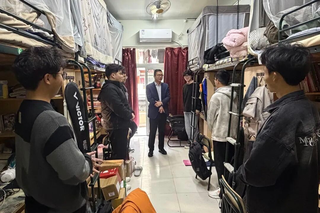 江秀景书记重点走访了25级本科生寝室,详细询问同学们第一学期适应情况以及学业、生活上的压力,了解寝室同学在校院两级和班级的学生干部任职情况,并对同学们的努力表示认可。重点提醒同学们严禁使用违规电器,规范插拔电源,及时清理易燃杂物,切实筑牢防火安全屏障。